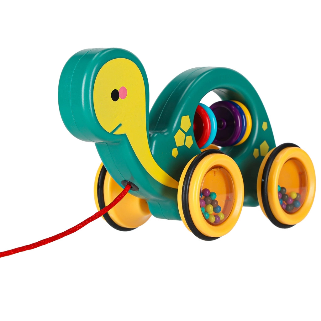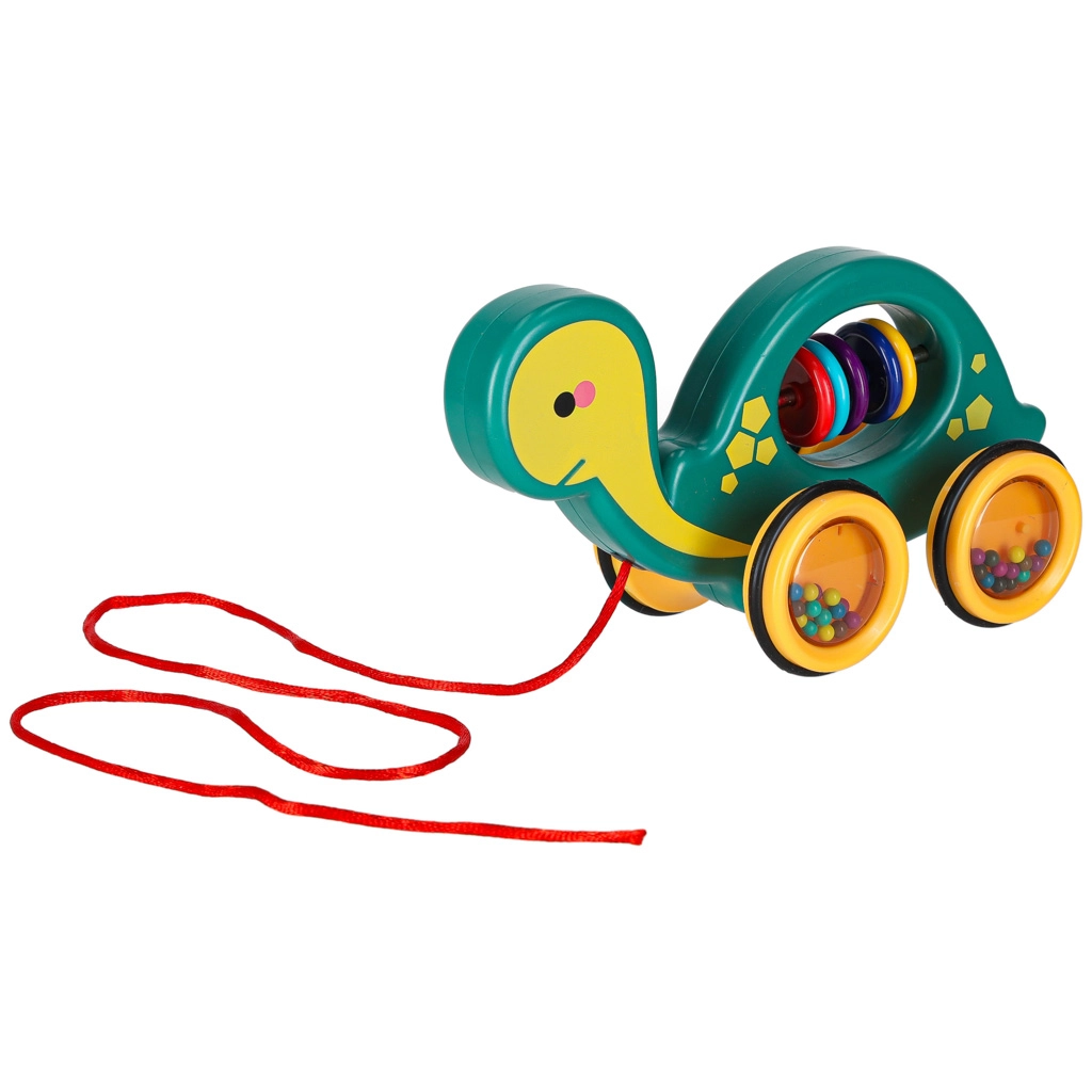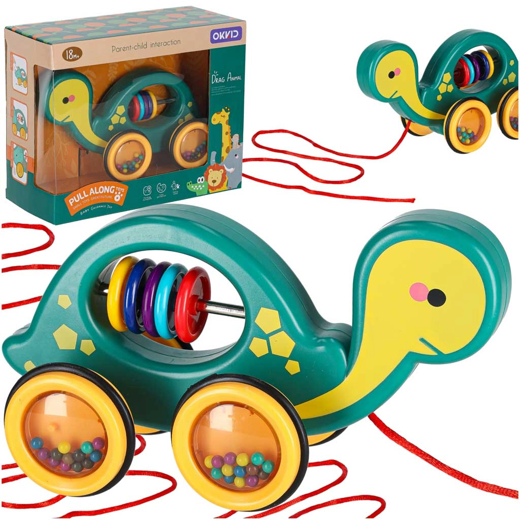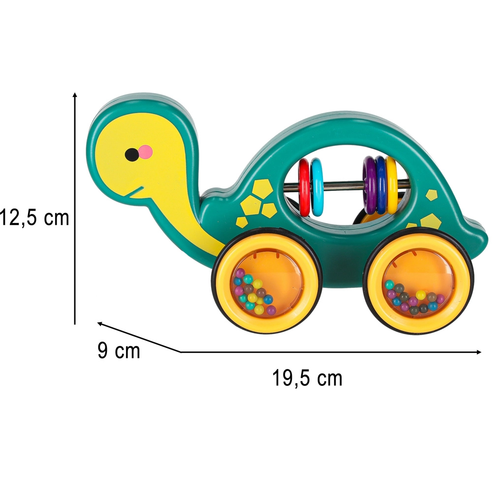 Die niedliche Zieh-Schildkröte an der Schnur fördert die Sinne und Motorik von Kindern. Beim Fahren erzeugen die Räder rasselnde Geräusche, die bunten Elemente laden zum Spielen ein und die Schnurlänge von 80 cm ist ideal für die ersten Schritte. Die leichte Kunststoffkonstruktion ist sicher und robust, geeignet für Kinder ab 18 Monaten.