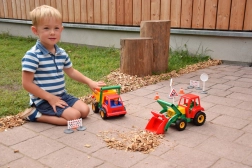 Der Traktor besteht aus hochwertigem, festem Kunststoff, der intensives Kinderspiel draußen wie drinnen mühelos mitmacht.