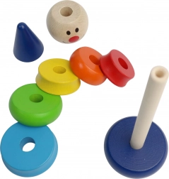 Dank der unterschiedlichen Ringgrößen trainieren Kinder Feinmotorik, logisches Denken und Geduld. Die leuchtenden Farben fördern das visuelle Wahrnehmen sowie das Lernen von Farben und Reihenfolgen. Die Ausführung aus Holz sorgt für Robustheit und sicheres Spielen.