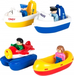 Enthalten sind 41 Teile, darunter 4 Figuren und Zubehör: Boote, Polizeiboot, Wasserflugzeug und Raft. Ideal für gemeinsames Spielen und das Erfinden eigener Geschichten.