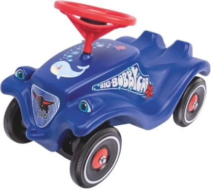 Das beliebte BIG Bobby Car Classic in Blau mit niedlichem Delphin sorgt drinnen wie draußen für eine bequeme und sichere Fahrt. Der ergonomisch geformte Sitz ermöglicht das Fahren im Sitzen oder im Kniestand und fördert Gleichgewicht und Koordination. Die Kunststoffräder sind robust und für verschiedene Untergründe geeignet.