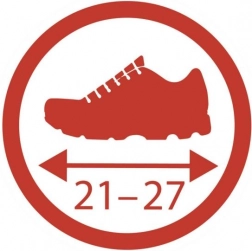 Riemen und die flexible Form ermöglichen einfaches Aufziehen auf verschiedene Kinderschuhe und zuverlässigen Sitz auch bei flotter Fahrt.