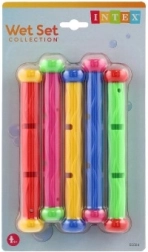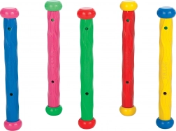 Das Set enthält 5 robuste Stäbe mit einer Länge von 30 cm, mit Gummikörper und Kunststoff-Endkappen. Ideal für den Pool für Kinder ab 6 Jahren – zum Üben des Tauchens, des Luftanhaltens und für mehr Sicherheit im Wasser.