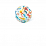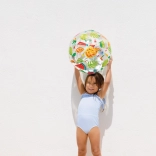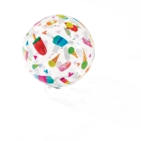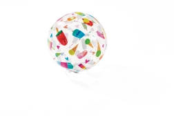 Der transparente Ball ist mit farbenfrohen Prints von Obst, Eiscreme, Fischen und maritimen Motiven verziert. Das Motiv wird zufällig gewählt, sorgt jedoch stets für ein fröhliches Aussehen und gute Sichtbarkeit im Wasser und am Strand.