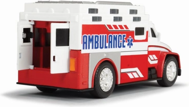 Der Krankenwagen besteht aus robustem Kunststoff und hat eine kompakte Länge von 15 cm – perfekt für zu Hause und unterwegs. Ideal zur Förderung von Feinmotorik, Vorstellungskraft und Rollenspielen.