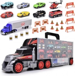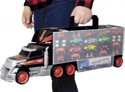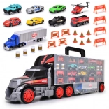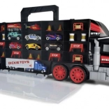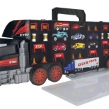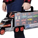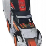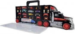 Der riesige LKW-Koffer kombiniert Aufbewahrungsbox und Spielset in einem. Die aufklappbaren Fächer fassen das komplette Set an Fahrzeugen und Zubehör, und der praktische Griff erleichtert das Tragen. Die manuelle Launch-Mechanik in der Kabine verwandelt den LKW in eine Rennstrecke und sorgt für actiongeladene Starts.