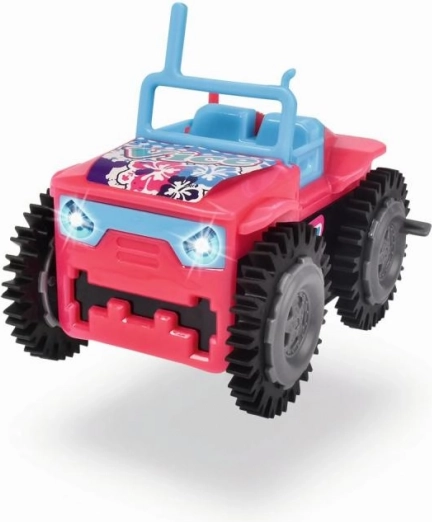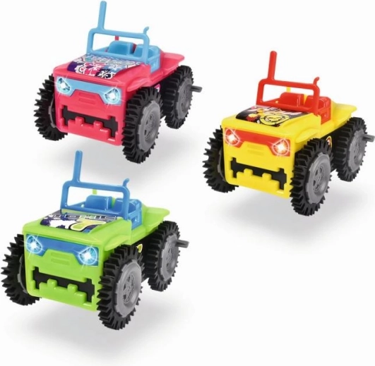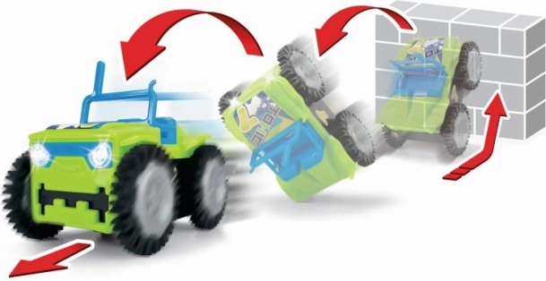Auto mit Überschlagfunktion, batteriebetrieben. 3 Farbvarianten – rosa, gelb, grün. Länge 9 cm.