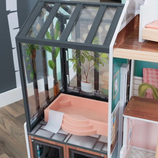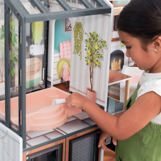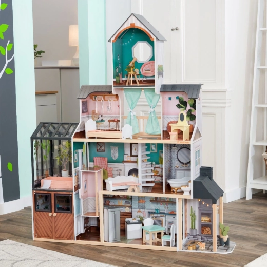 Entdecken Sie ein luxuriöses Spielerlebnis mit dem KidKraft Celeste Mansion Puppenhaus – ein vierstöckiges Haus mit 8 liebevoll dekorierten Zimmern, einem Schiebeaufzug, einem Wintergarten mit Whirlpool und umfangreichem Zubehör. Kinder begeistern Licht- und Soundeffekte, zu öffnende Elemente sowie die robuste, strapazierfähige Konstruktion, ideal für Puppen bis 30 cm.