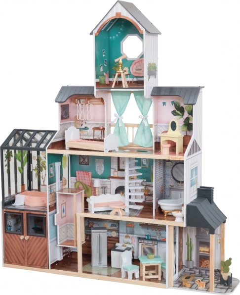 Das KidKraft Celeste Mansion ist ein prachtvolles Holzpuppenhaus, das jedes Kinderzimmer in eine unendliche Fantasiewelt verwandelt. Auf vier Etagen befinden sich acht detailreich eingerichtete Räume, eine Terrasse und ein stilvoller Wintergarten mit Whirlpool. Öffnende Türen und Klappen, ein gleitender Aufzug zwischen den Stockwerken und realistische Accessoires sorgen für stundenlangen kreativen Spielspaß.