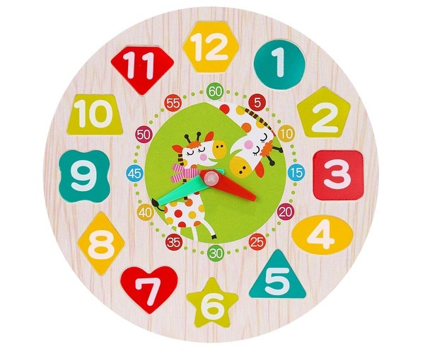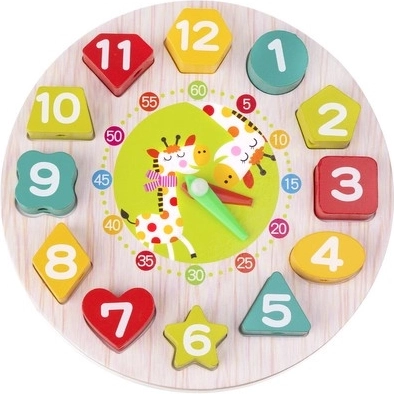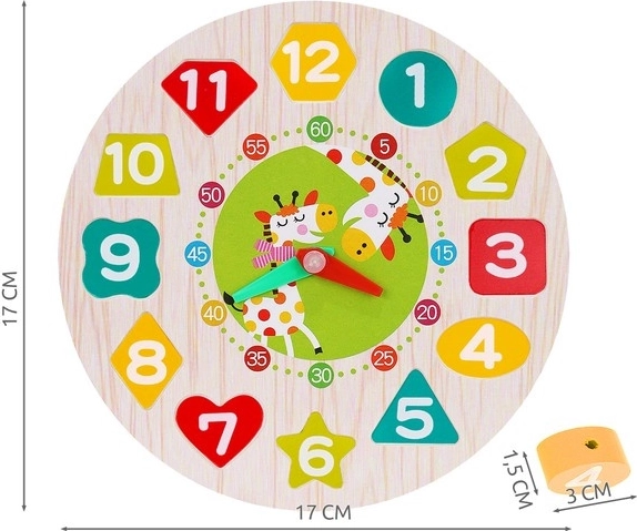 Dieses hölzerne Lernspielzeug verbindet Spielen und Lernen. Die runde Basis mit den Zahlen 1–12 in unterschiedlichen Formen lehrt Kinder, Formen zuzuordnen, Farben und Ziffern zu erkennen, während die beweglichen Stunden- und Minutenzeiger das Verständnis für volle Stunden und Minuten fördern. Robuste Holzteile liegen gut in der Hand und sind sicher verarbeitet.