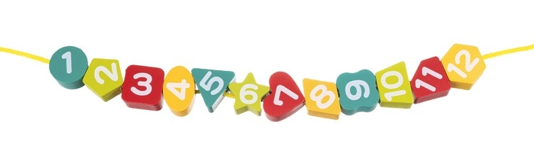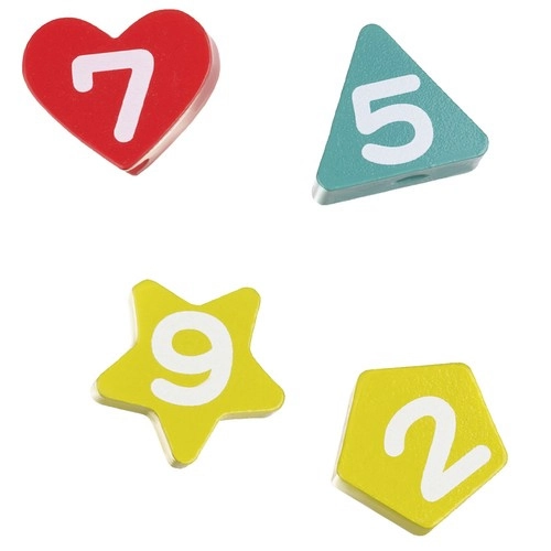 Inklusive Schnur mit Holzgriff. Das Auffädeln der Zahlen trainiert Geduld, Konzentration und Fingerfertigkeit.