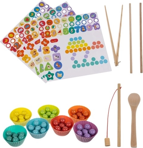 Pinzette, Stäbchen und Löffel helfen, Greifen, Präzision und Augen-Hand-Koordination zu trainieren. Ideal zur Vorbereitung auf das Schreiben und für alltägliche Fertigkeiten.