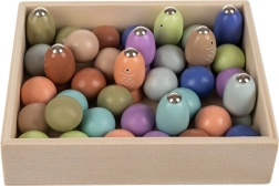 Die 22 cm große Tafel besteht aus strapazierfähigem Holz und wird durch eine Papierunterlage mit Ozeanmotiv ergänzt. Das umfangreiche Set ermöglicht verschiedene Spielvarianten – vom Angeln über das Umsetzen der Kugeln bis hin zu Zeitwettbewerben.