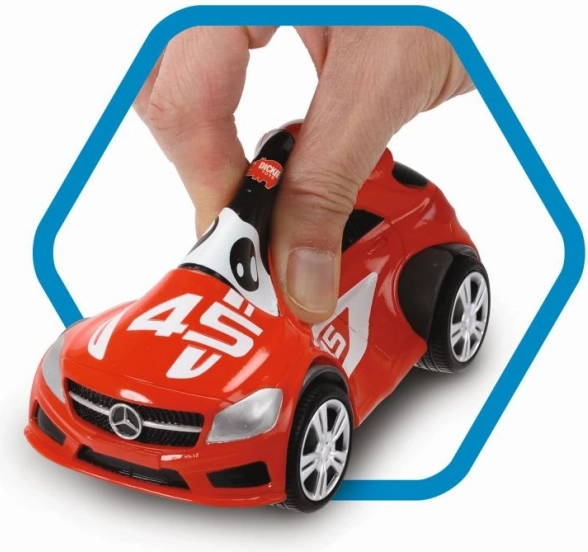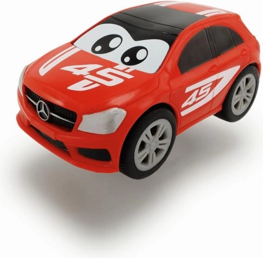 Das fröhliche Quetsch-Spielzeugauto MERCEDES ABC mit einer Länge von 11 cm begeistert die kleinsten Fahrer: Es hat eine weiche Karosserie mit lustigen Augen und fährt dank Rückzugmechanismus. Es ist in 3 Farben erhältlich – Rot, Blau und Grün.