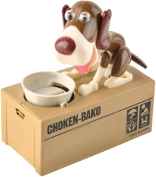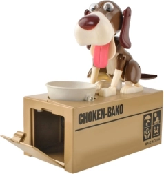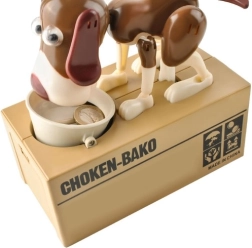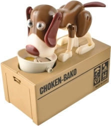 Suchen Sie eine Motivation, wie Sie Kinder fürs Sparen begeistern? Die interaktive Spardose CHOKEN-BAKO ist genau das Richtige. Legen Sie eine Münze in den Napf und drücken Sie sanft darauf – der Hund bewegt Augen, Ohren, Kopf, Pfoten und Schwanz, gibt einen Ton von sich und „frisst“ die Münze, die in ein sicheres Fach fällt.