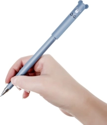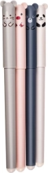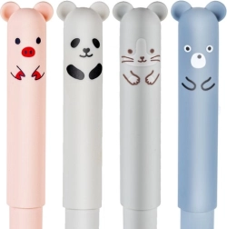 Das Set enthält 4 stylische radierbare Stifte in den Farben Grau, Weiß, Rosa und Blau mit verspielten Tiermotiven (Ferkel, Panda, Mäuschen, Bärchen). Dank der thermosensitiven Tinte lassen sich kleine Fehler leicht korrigieren – einfach den Radiergummi am Stiftende verwenden und erneut schreiben, ganz ohne unschöne Durchstreichungen.