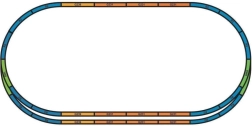 Das Set ist für die Konfiguration A+E optimiert. Es gewährleistet die korrekte Führung zweier paralleler Kreise einschließlich spezieller Teile für Weichen und Einspeisung.
