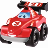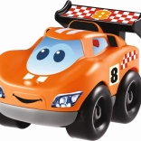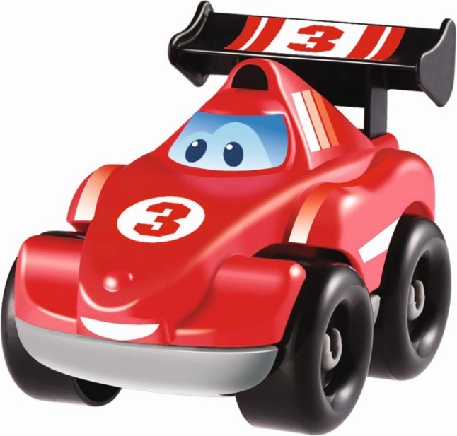 Drei Modelle von Rennwagen mit austauschbarer Karosserie. Jedes Rennwagenmodell mit einem lustigen Gesicht hat keine scharfen Kanten und liegt gut in der Hand. Ideal für kleine Kinderhände. Produktabmessungen (L×B×H): 10 × 6,5 × 6,5 cm.