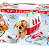 Der Koffer lässt sich im Handumdrehen in eine Transportbox für den Hund verwandeln und hält zugleich sämtliches Zubehör beisammen. Enthalten sind ein Napf für den Hund, ein Knochen und grundlegendes Arztzubehör für eine fantasievolle Versorgung des Lieblings.
