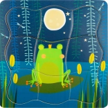 Jede Schicht veranschaulicht eine andere Phase – vom Ei über die Kaulquappe bis hin zum Froschkönig. Kinder festigen spielerisch ihr Wissen über die Natur und üben gleichzeitig das Puzzeln nach Formen und Bildern.