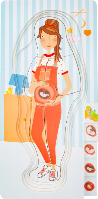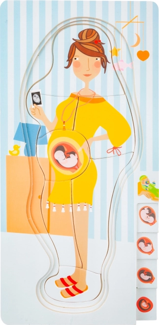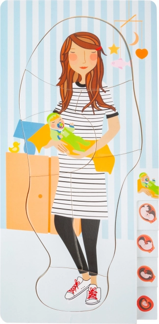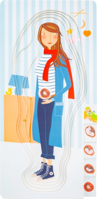 Mit dem Small Foot Schichtpuzzle Schwangerschaft entdecken Kinder spielerisch den Verlauf einer Schwangerschaft. Das Puzzle besteht aus vier Schichten, die den Fortschritt von der ersten Woche bis zur Geburt abbilden. Neben dem Verständnis für die Schwangerschaft fördert dieses Puzzle die Konzentration und Feinmotorik der Kinder. Es kann sie auch auf die Ankunft eines Geschwisterchens vorbereiten. Jede Schicht zeigt eine andere Illustration des wachsenden Babys im Bauch.