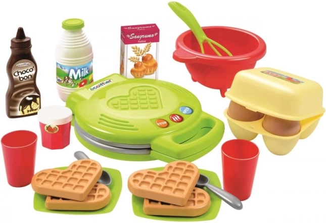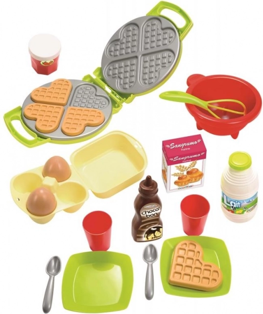Dieses Vafelwaffeleisen mit Zubehör ist perfekt für die Zubereitung von vier herzförmigen Waffeln, ideal für die Kleinen. Das Gerät verfügt über alle notwendigen Zubehörteile, um köstliche Waffeln zu backen.