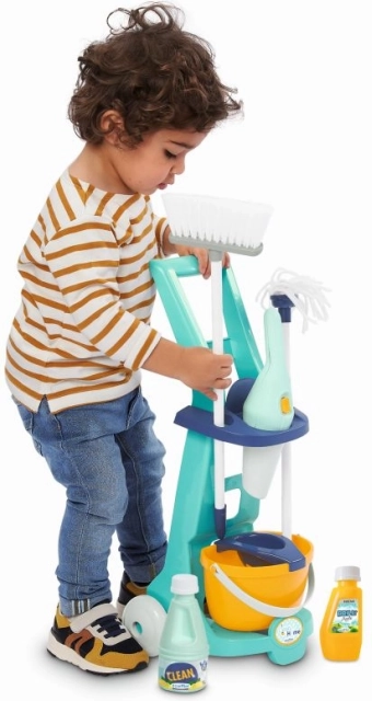 Dieser Kinderreinigungswagen enthält alles, was man zum Spielen beim Reinigen benötigt - Eimer, Mopp, Besen, Reinigungsmittel und Handstaubsauger. Er ist leicht und einfach zu handhaben, ideal für Kinder ab 3 Jahren.