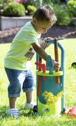 Dank der Räder und des Griffs können Kinder ihr gesamtes Werkzeug dorthin bringen, wo es gerade gebraucht wird – in den Garten, den Hof oder auf den Spielplatz.