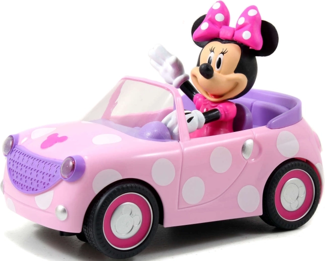 Mit diesem stylischen ferngesteuerten Cabrio der Marke Jada im Thema Disney MINNIE MOUSE gehen Kinder auf spannende Fahrten zu Hause und unterwegs. Das Auto überzeugt mit auffälligem rosa Design mit Punkten, einem detaillierten Innenraum und einer fest sitzenden Minnie-Figur mit ikonischer Schleife.
