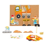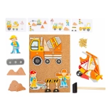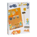 Dieses kreative Klopfset auf einer Korkplatte ist eine hervorragende Wahl für kleine Baumeister und Verkehrs-Fans. Kinder können aus Holzformen Arbeiter, Betonmischer, Kran oder Autos gestalten und sie mithilfe der Reißnägel sicher an der Korktafel befestigen. Die praktische Aufbewahrungsbox sorgt dafür, dass kein Teil verloren geht.