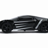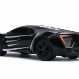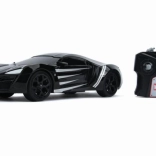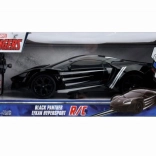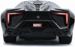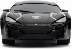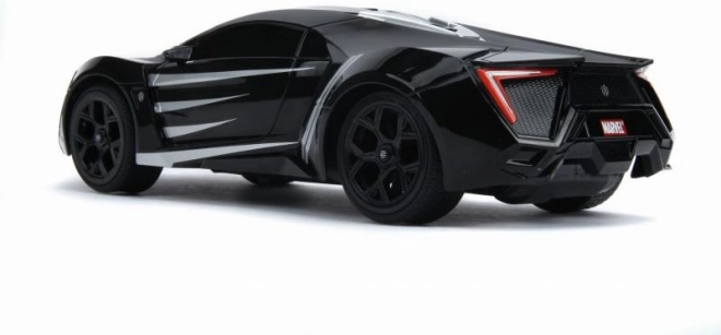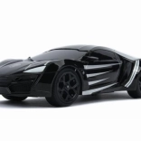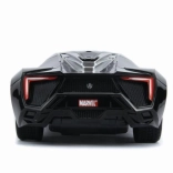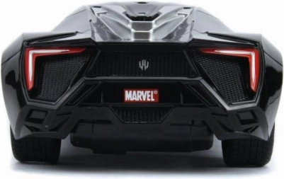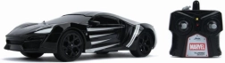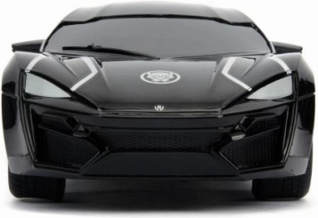 Genießen Sie actiongeladenes Fahren mit dem RC-Auto Lykan HyperSport im Black Panther-Design. Die schwarze Sportoptik mit silbernen Details und MARVEL-Logos fällt sofort ins Auge, während die stabile Steuerung auf 2,4 GHz geschmeidige Manöver ohne Störungen gewährleistet.
