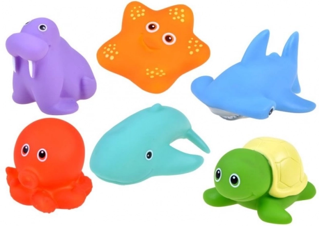 Die Spielzeuge sind mit Quietschmechanismen ausgestattet, die Kinder faszinieren und deren sinnliche Wahrnehmung während des Badens fördern.