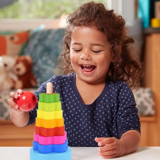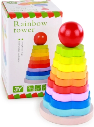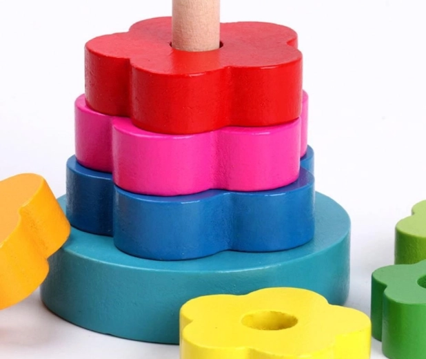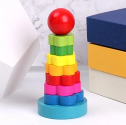 Beschäftigen Sie die Kinder für längere Zeit mit einem klassischen Holzspielzeug. Der Stapelspiel-Ring ist ein klassisches Spiel für Kleinkinder. Es hilft ihnen, die feinmotorische Entwicklung, die Logik und die Geduld zu verbessern. Die Stapel-Sets können auch zum Erlernen von Farben oder Formen verwendet werden. Das Spiel besteht darin, einen Turm aus Ringen zu bauen, von dem größten bis zum kleinsten Ring.