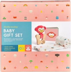 Suchen Sie ein liebevolles und praktisches Geschenk für frischgebackene Eltern? Das Geschenkset für Babys Äffchen PETIT COLLAGE verbindet hochwertige Naturmaterialien, eine durchdachte Produktauswahl und ein verspieltes Design. Dank zertifiziertem Holz und Bio-Baumwolle ist es sanft zur empfindlichen Babyhaut und zur Umwelt.
