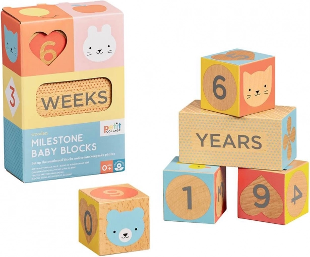 Bewahren Sie Erinnerungen an jeden Meilenstein mit den Meilenstein-Würfeln von Petit Collage auf. Dank der verschiedenen Drucke auf jeder Seite stellen Sie mühelos Datum, Alter oder Nachrichten zusammen und erstellen so wunderschöne, teilbare Fotos. Die natürliche Ausführung aus FSC-Buchenholz ist umweltfreundlich und sicher für Kinder ab der Geburt.