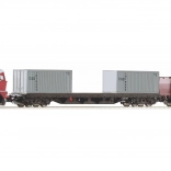 Das Set umfasst Container-Flachwagen, einen offenen Wagen und einen Kesselwagen für authentische Mischgüter und variable Zugbildungen.