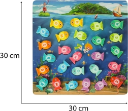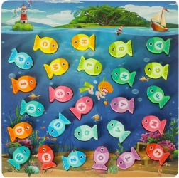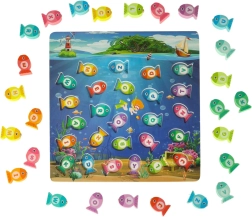 Tauchen Sie ein in die magische Unterwasserwelt und erleben Sie endlosen Spaß mit dem Holzspiel für das Fischen von Fischen. Dieses lehrreiche Spiel hilft Kindern, Buchstaben, Farben und Zählen zu lernen. Mit Buchstaben markierte Fische müssen den richtigen Löchern zugeordnet werden, und sie können auch mit einer magnetischen Angelrute gefangen werden. Der gesamte Prozess hilft, Konzentration und Geduld zu entwickeln.