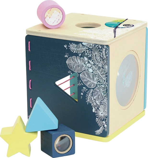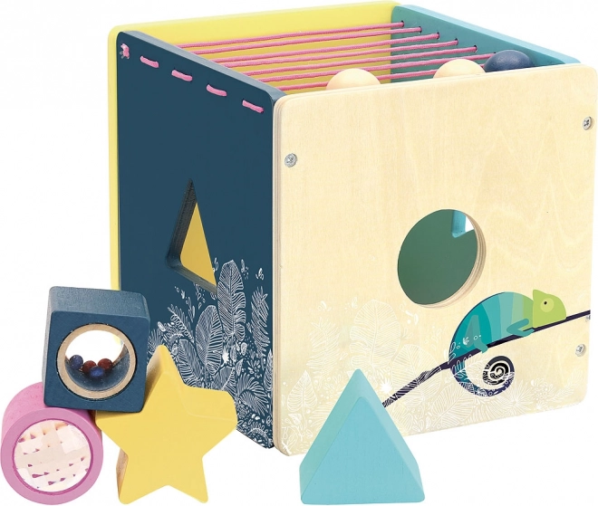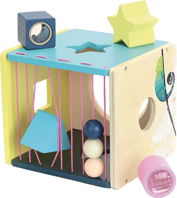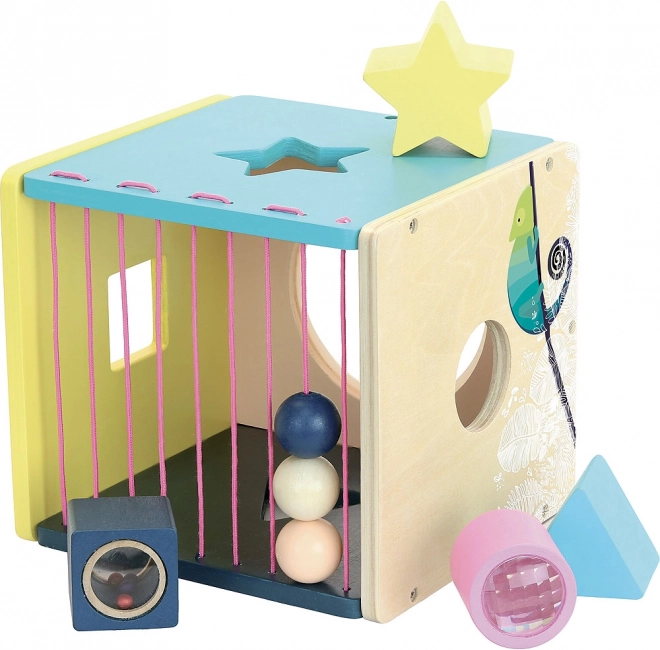 Kinder können verschiedene Formen in die entsprechenden Öffnungen stecken, was ihre Feinmotorik und räumliche Orientierung entwickelt.