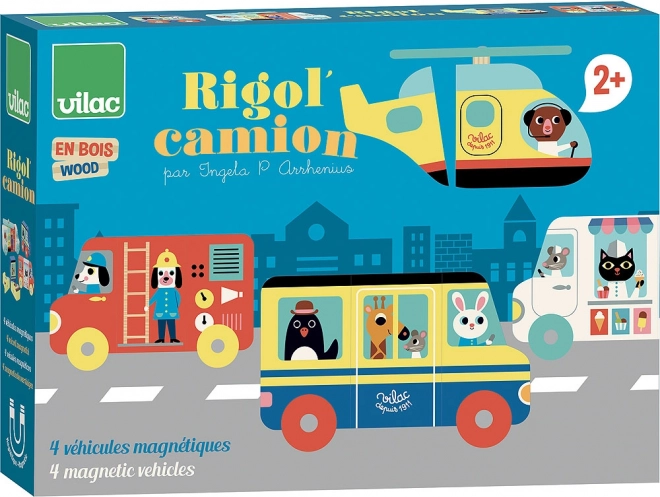 Dieses hochwertige magnetische Holzpuzzle bietet Kindern endlose Kombinationsmöglichkeiten. Dank der magnetischen Teile lassen sich die Fahrzeuge leicht verbinden und wieder auseinandernehmen – und die Teile sogar witzig untereinander kombinieren. Fröhliche Farben und Retro-Illustrationen der Künstlerin Ingela P. Arrhenius machen jedes Spiel zu einem fesselnden visuellen Erlebnis.