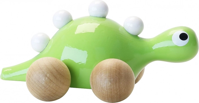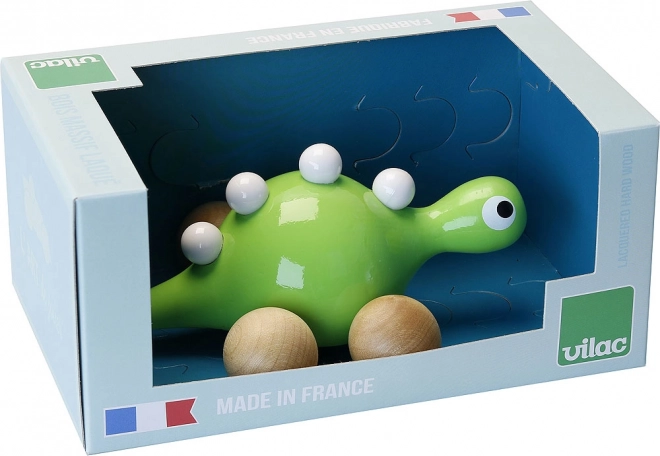Genießen Sie den Spaß mit dem hölzernen Dinosaurier auf Rädern von der Marke Vilac. Dieser niedliche Dinosaurier ist grün gestrichen und mit weißen Erhebungen auf dem Rücken verziert. Dank der Holzräder kann Ihr kleiner Entdecker den Dinosaurier leicht im Haus oder draußen fahren.