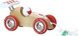 Dieses elegante hölzerne Rennauto mit auffälligen roten Details und Flügeln begeistert Kinder auf den ersten Blick. Dank der Schnur nehmen sie es leicht mit durch die Wohnung oder nach draußen und entwickeln beim Ziehen ganz natürlich Stabilität und Koordination. Gummierte Metallräder sorgen für eine sanfte und leise Fahrt.