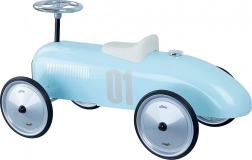 Entdecken Sie den Zauber klassischer Rennwagen im Kinderformat. Dieses hellblaue Metall-Rutschfahrzeug im Vintage-Stil verbindet zeitloses Design mit sicherem und komfortablem Fahrverhalten. Gummierte Räder gewährleisten leisen Lauf auch auf harten Böden, während das Lenkrad das Einschlagen der Vorderräder für natürliches Steuern übernimmt.