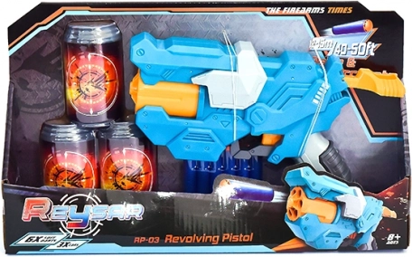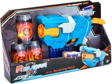Zum Lieferumfang gehören drei Plastikdosen, die als Zielscheiben für das Zieltraining dienen, sowie sechs weiche Schaumstoffmunitionen für sicheres Spielen. Die perfekte Wahl für Zielwettbewerbe zu Hause und actionreiche Duelle mit Mitspielern.