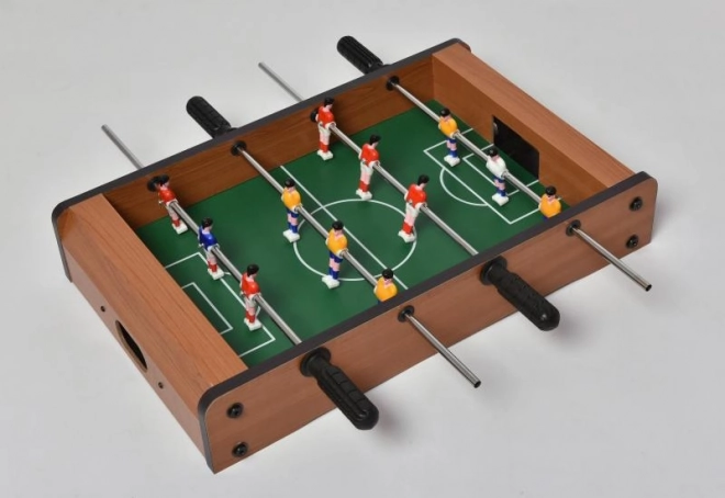 Dieser kleinere Tischfußball ist die ideale Wahl für alle Fußballfans, die auch zu Hause Spaß haben möchten. Er ist aus farbig lackiertem Holz gefertigt, was seine lange Lebensdauer sicherstellt. Jedes Team verfügt über 6 Spieler auf zwei Stangen, die eine einfache Bedienung und die Simulation eines echten Fußballspiels ermöglichen.