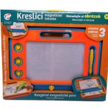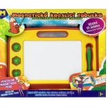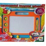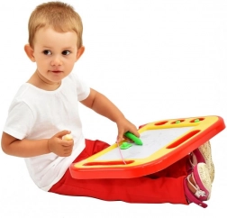 Die magnetische Zeichentafel ist die ideale Wahl für kleine Künstler zu Hause und unterwegs. Dank des magischen Magnetstifts und der drei Stempel genießen Kinder stundenlanges Gestalten ohne Papier und Stifte. Mit einem einzigen Schiebebewegung des Löschbalkens verschwindet das Bild und die Fläche ist bereit für das nächste Kunstwerk.