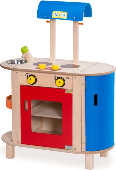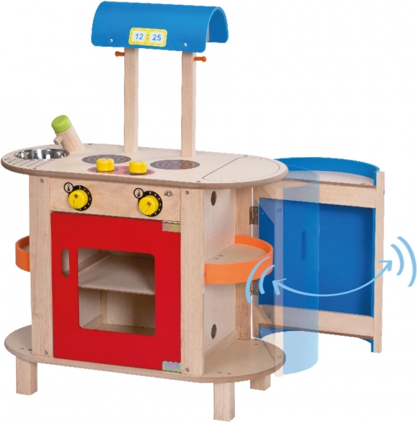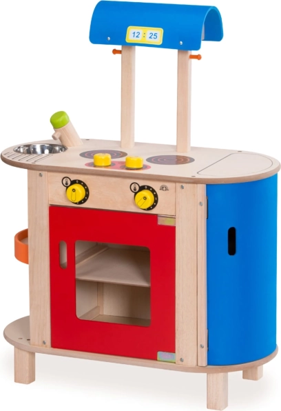 Suchen Sie nach einer Möglichkeit, die Kreativität und motorischen Fähigkeiten Ihrer Kinder zu entwickeln? Diese Wonderworld Kinderküche aus Holz ist eine ausgezeichnete Wahl! Sie bietet einen Herd mit integriertem Ofen und ein Zweiplattenkochfeld. Die Regler geben Klickgeräusche ab, die dem Spiel Authentizität verleihen. Die Küche umfasst auch einen Kühlschrank, eine Spüle mit Armatur und eine Dunstabzugshaube. Dank der Magnetverschlusstüren können Kinder sicher spielen.