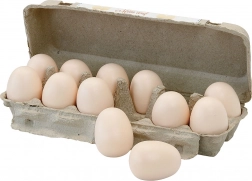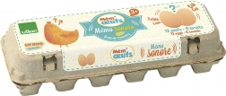 Das Klang-Memo in Ei-Form in einer klassischen Kartonverpackung ist ideal zur Förderung der sensorischen Fähigkeiten von Kindern. Das Spielzeug unterstützt das Gedächtnis, indem die Kinder Paare von Eiern mit demselben Klang suchen.