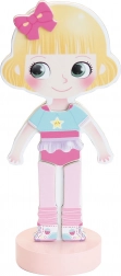 Die stilvolle Designerin Mia wartet darauf, dass du ihr das schönste Outfit zusammenstellst. Mit der robusten Holzfigur auf stabilem Standfuß und den magnetischen Teilen können Kinder Kleider, Schuhe und Accessoires kinderleicht kombinieren und unzählige modische Looks kreieren.