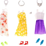 Nicht nur Kleider, sondern auch Accessoires wie Schuhe und Schmuck, die das Erstellen verschiedener Looks für Puppen ermöglichen.