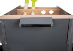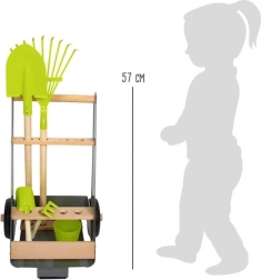 Dieser Gartenwagen ermöglicht es jungen Gärtnern, an ihrem Traumbeet zu arbeiten. Der stabile Wagen aus Buche und Metall lässt sich dank der festen Räder leicht durch den Garten schieben oder ziehen. Er enthält 5 Teile Werkzeug für sicheres und spaßiges Gärtnern.